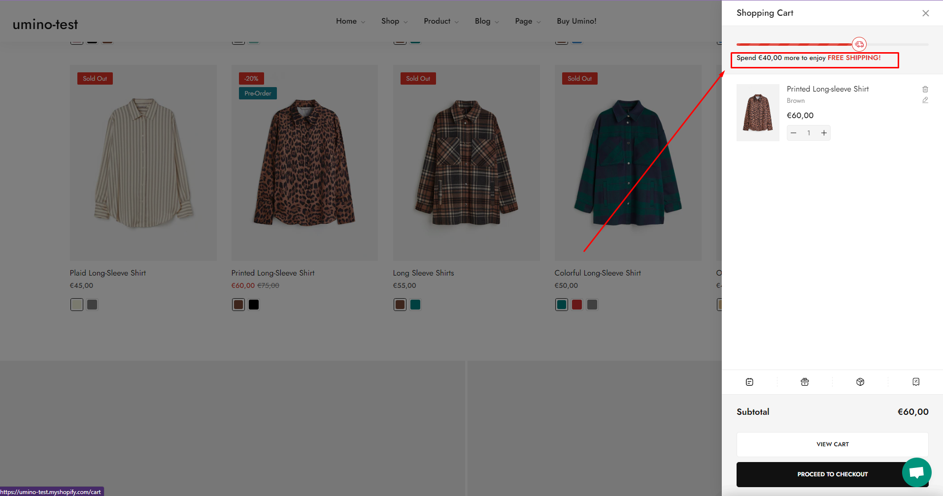 To change the message of free shipping in minicart, please follow [this link.](https://blueskytechcos-organization.gitbook.io/umino-shopify/theme-settings/cart)