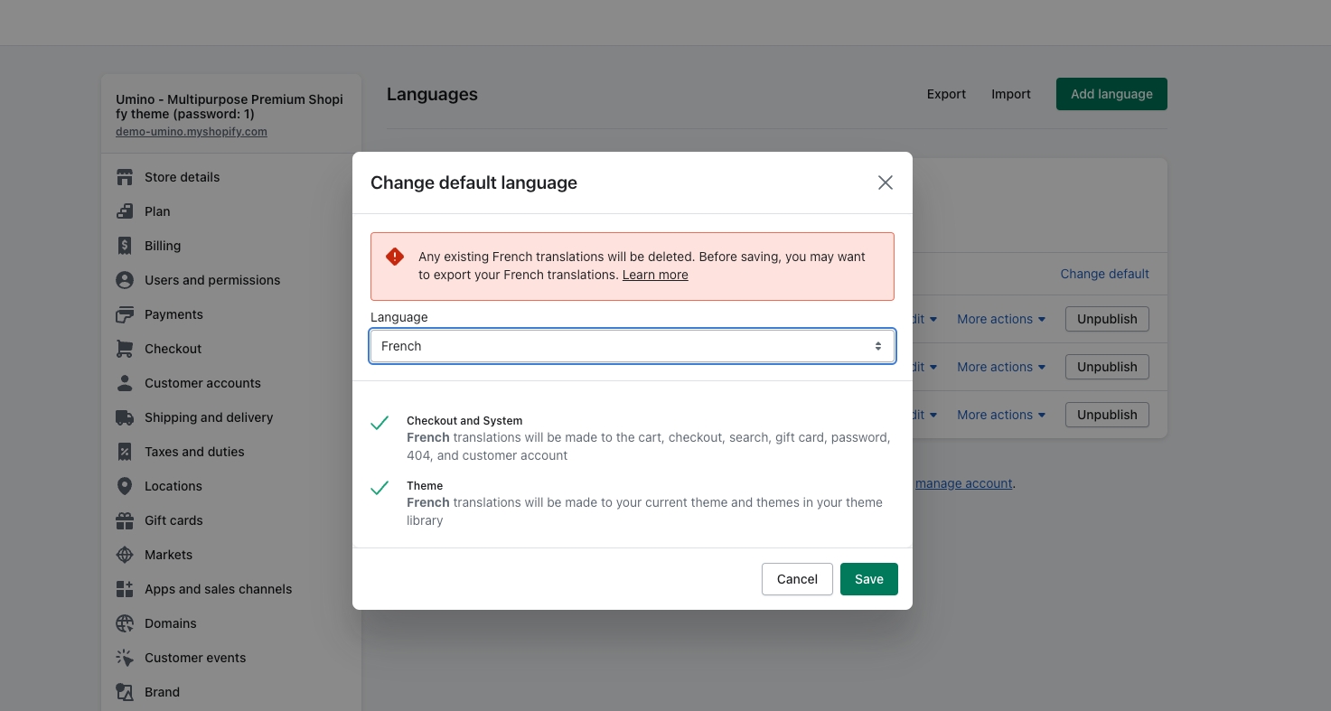 Step 3: After changing the default language, your previous language will be deleted, please add the default language you want to translate again.