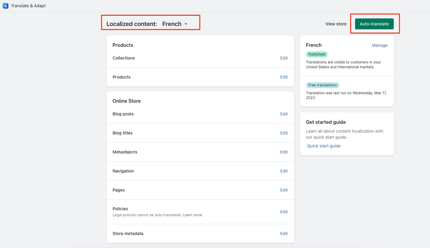 Step 1: Install the Translate & Adapt app by Shopify