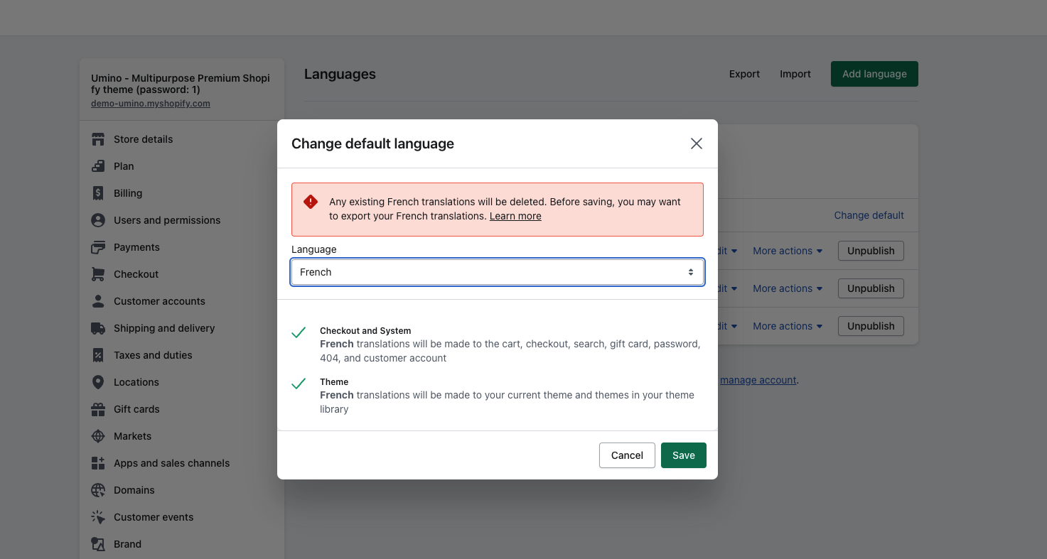 **Step 3:** After changing the default language, your previous language will be deleted, please add the default language you want to translate again.