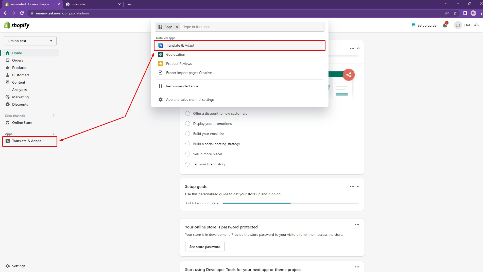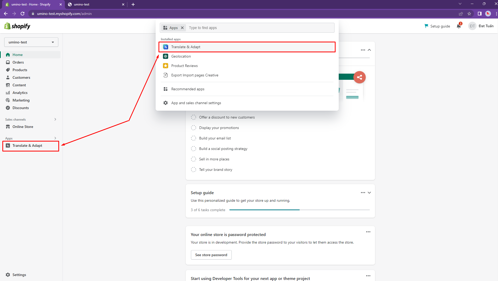Step 1: Install the Geolocation app and Translate & Adapt app by Shopify