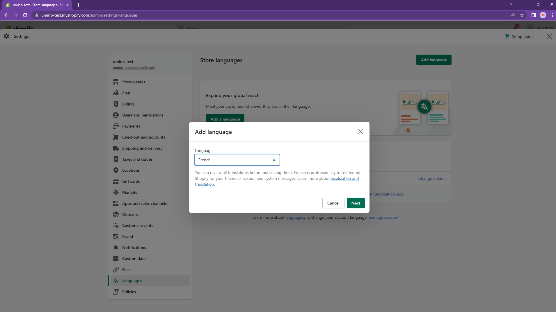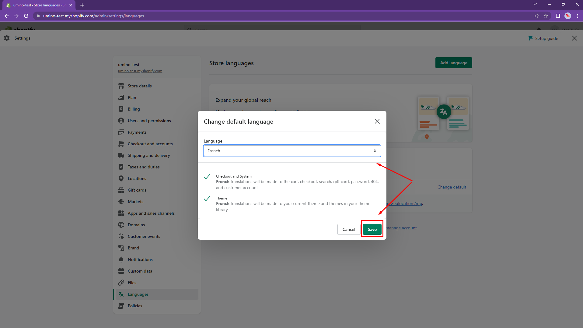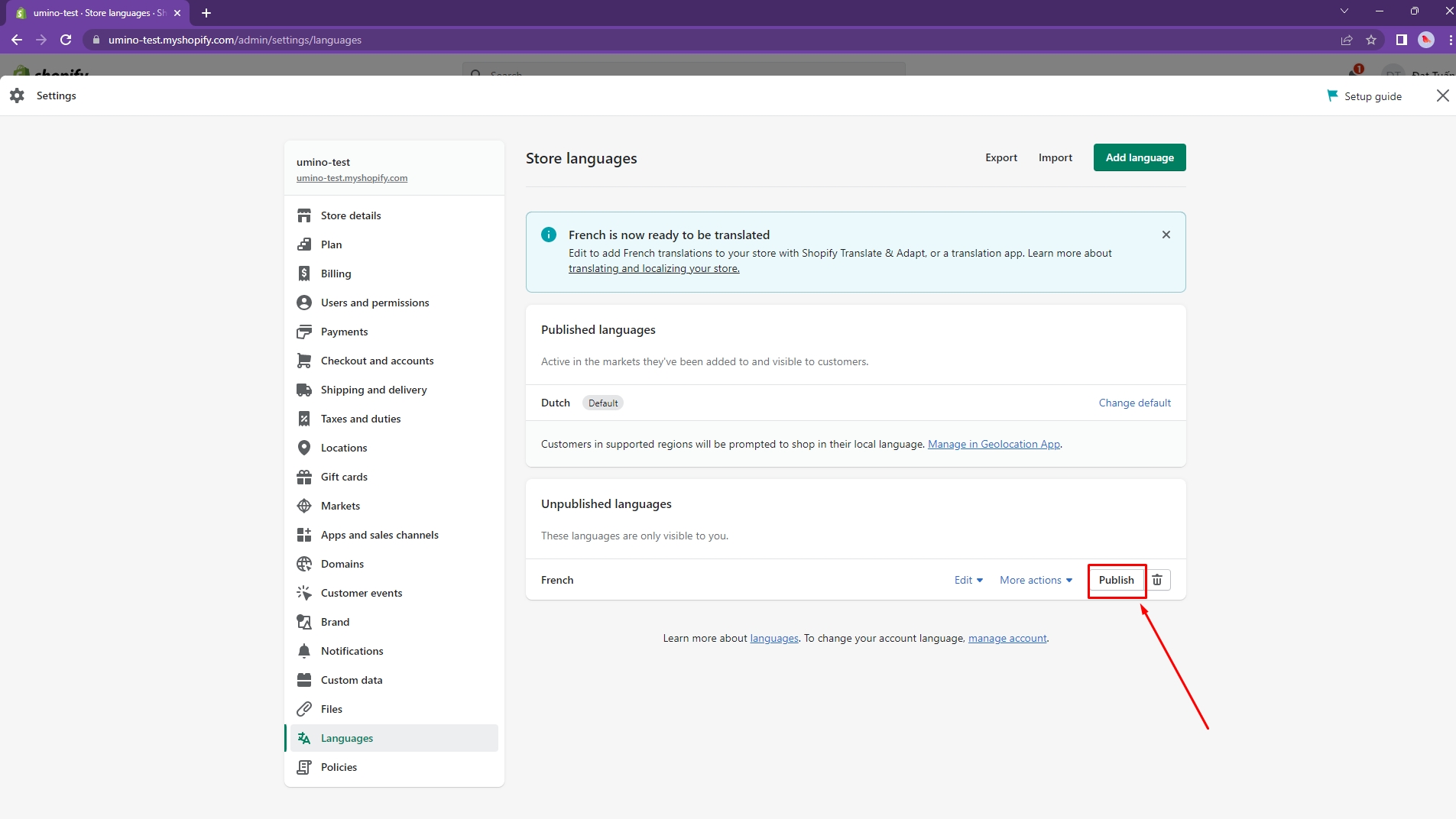 It might take about 10 minutes. After translating, back to your store and you can see the result