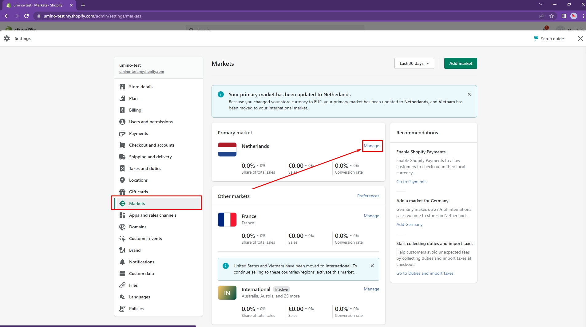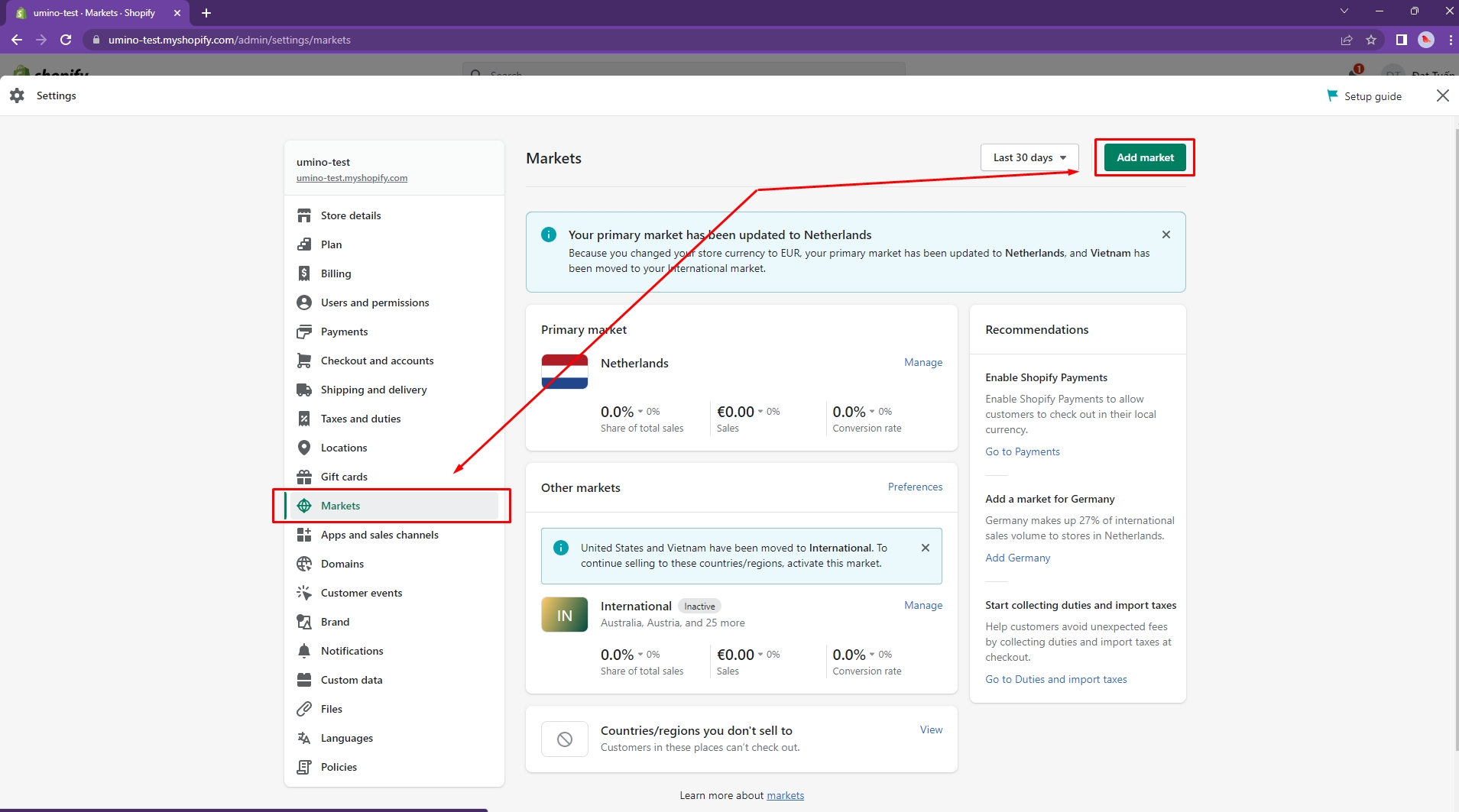 Go to Settings -> Market -> Add market to add a new Market