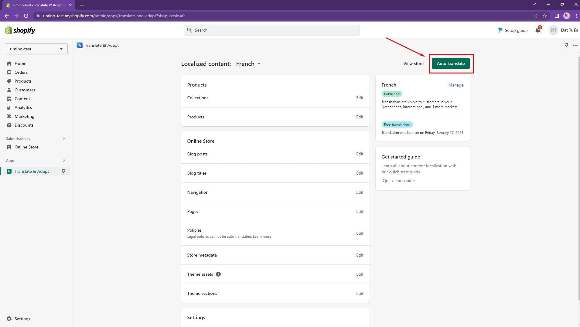 Step 4: Auto translate theme with Translate & Adapt app