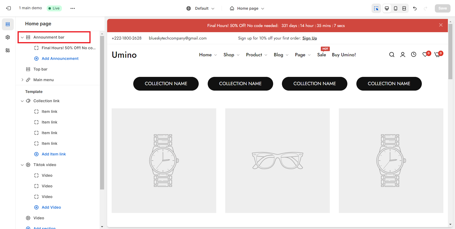 An announcement bar is a short snippet where you can showcase a message to your site. Using an announcement bar on your website is one of the easiest ways to draw visitors' attention.
