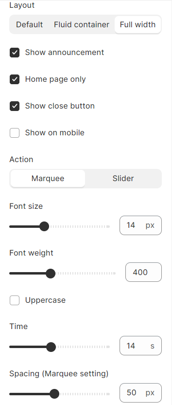 1. In the theme editor **(Customize)**, click **Announcement Bar**