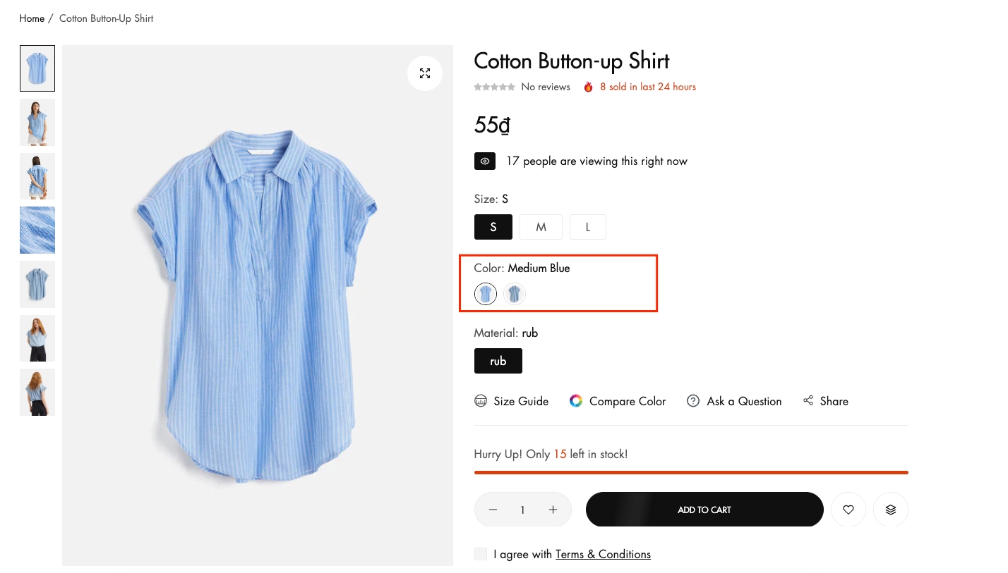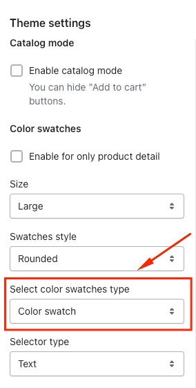 Setting: From your admin, click to Online Store -> Themes -> Product -> Color swatches