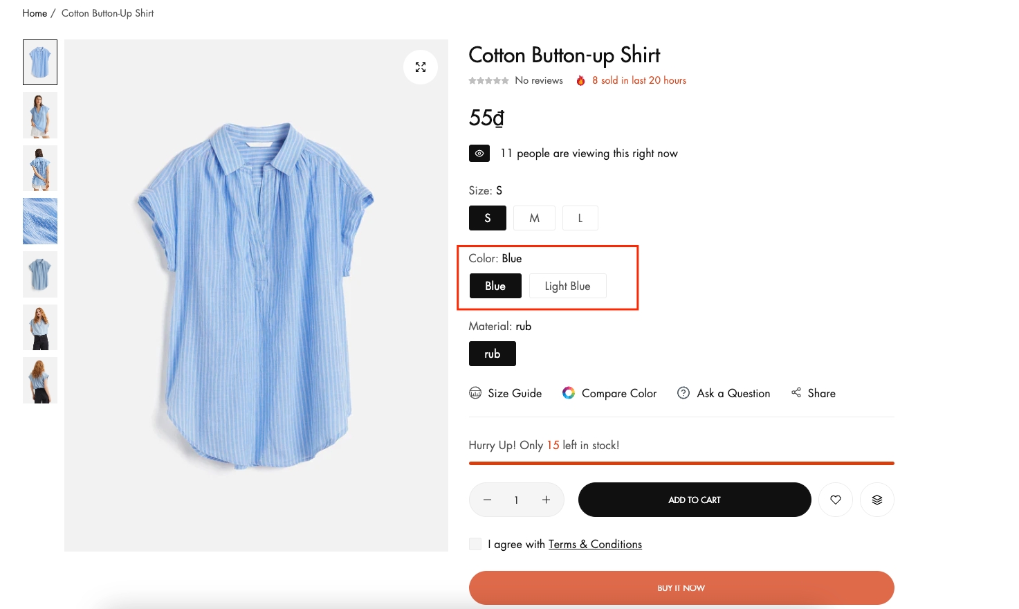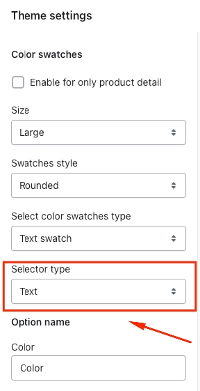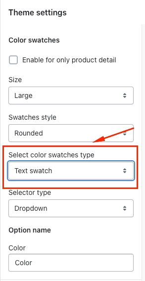Setting: From your admin, click to Online Store -> Themes -> Product -> Color swatches