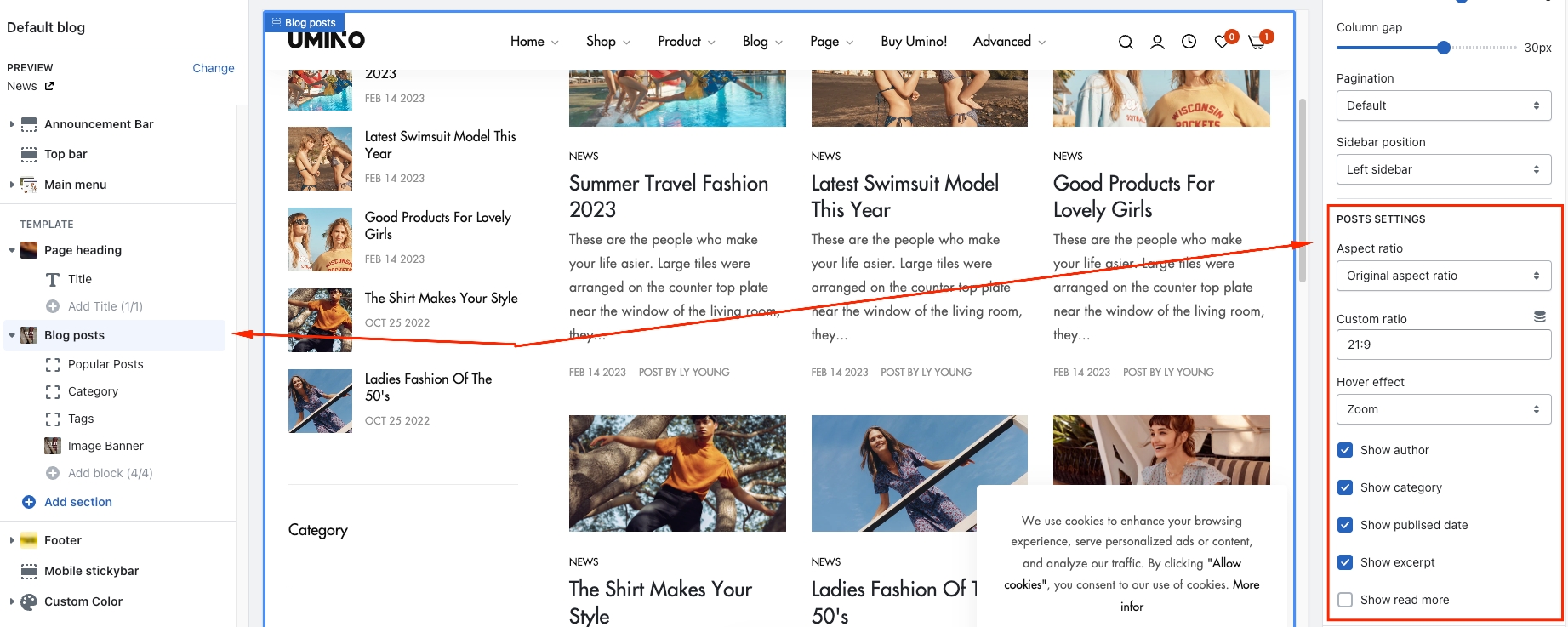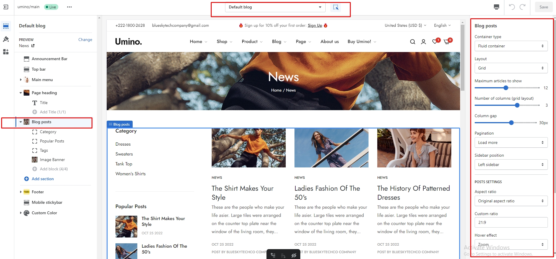 Select Blog posts, then Default blog post.