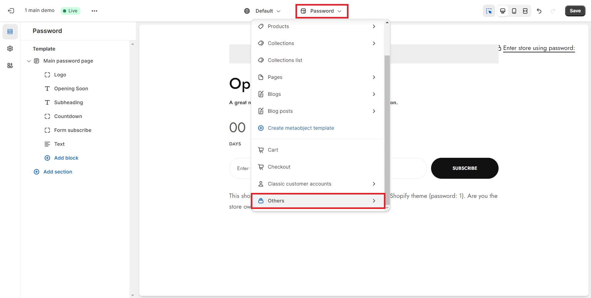 A landing page that adds password protection to merchants' online stores in case they are not yet ready to go live.