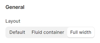Select from a range of layout options, including Default, Fluid container, and Full width, allowing you to choose the most suitable design configuration for your content.