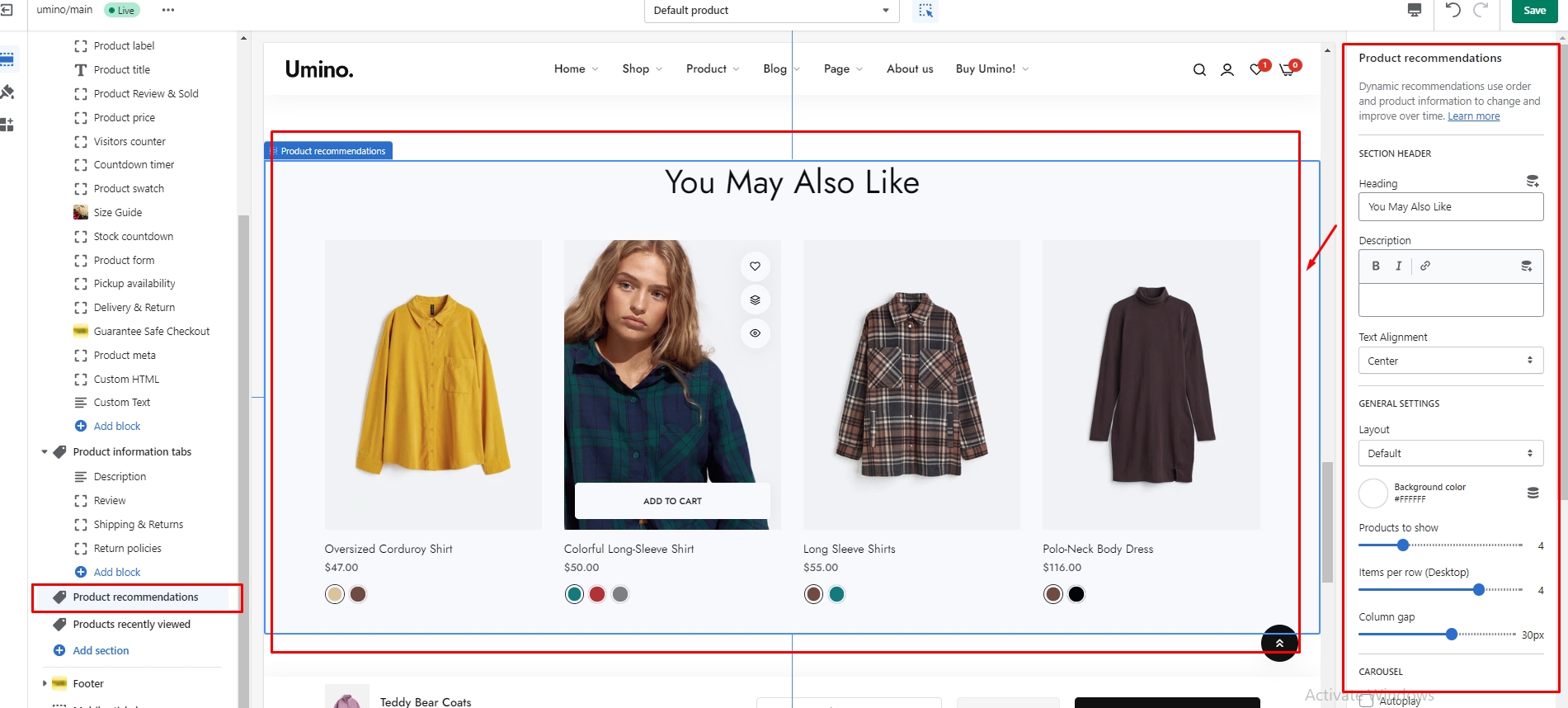 On the left-sidebar, add Product recommendations.