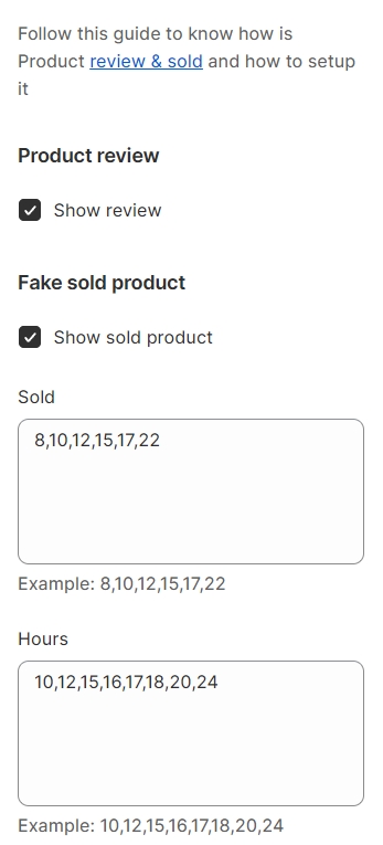 Show Fake Sold Product checkbox: Tick on this checkbox to show the sold Product.