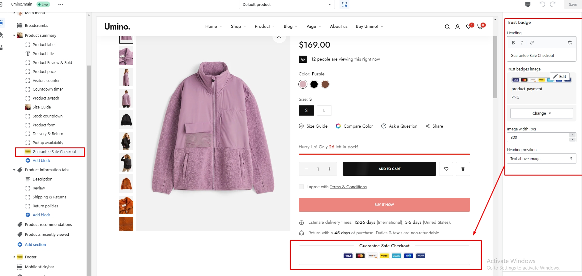 Trust badge: Updating the Trust Badge helps create customer trust regarding products.