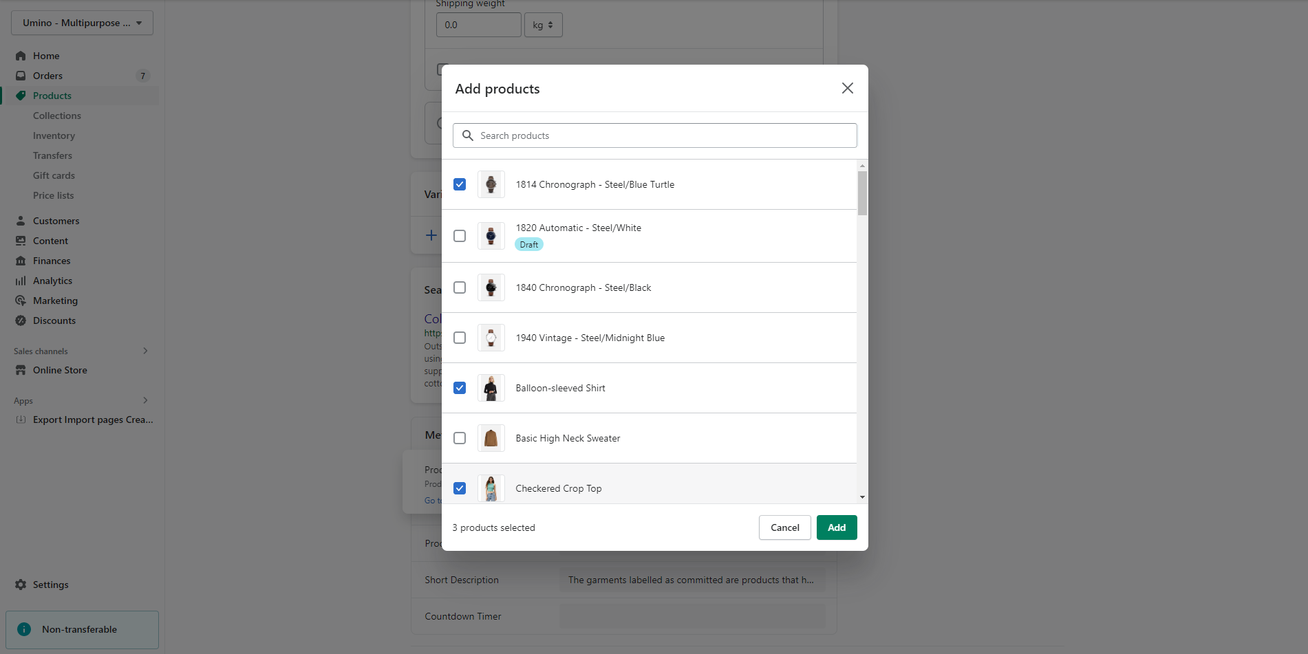 Click to Select Products and select the products you want to group
