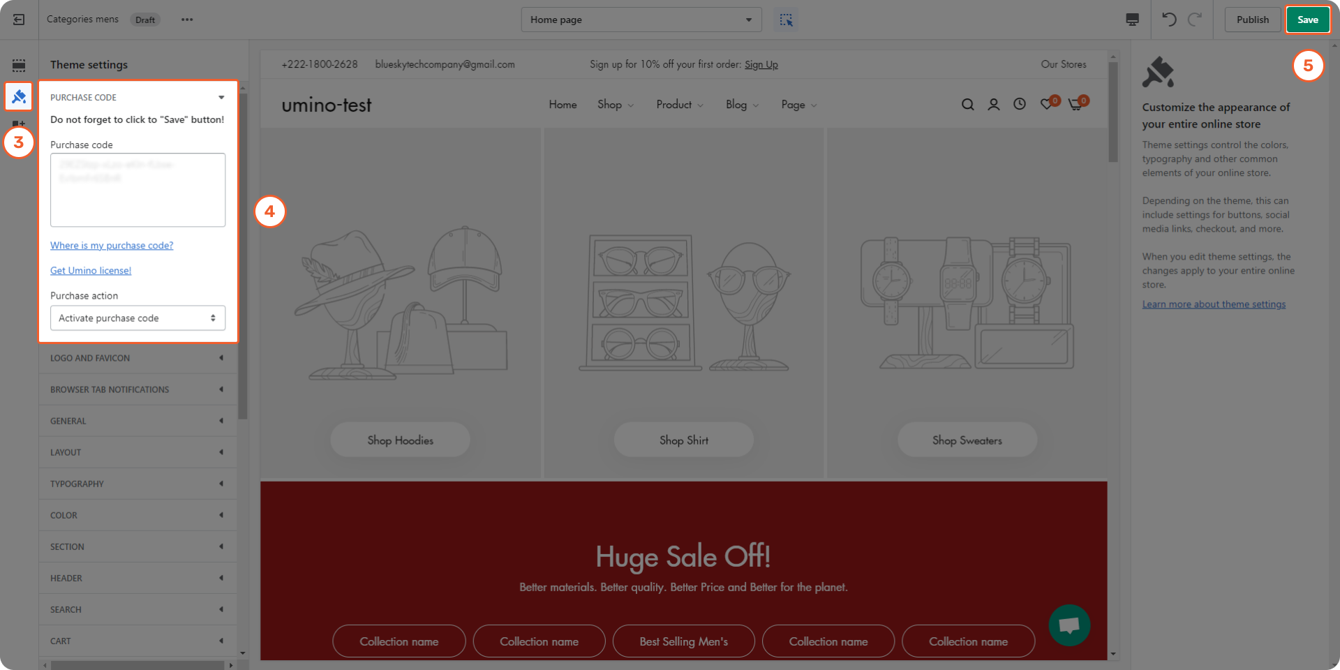 Step 2: Click to Theme Setting icon in left menu and select Purchase Code