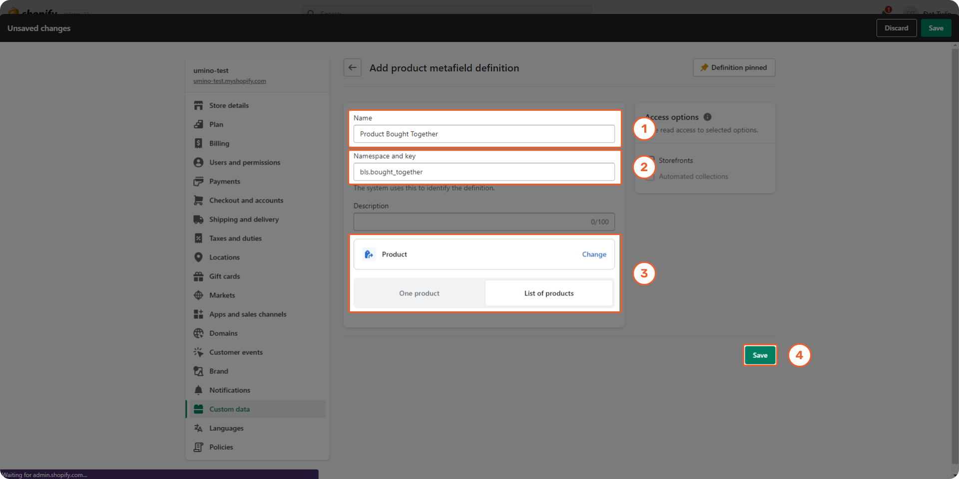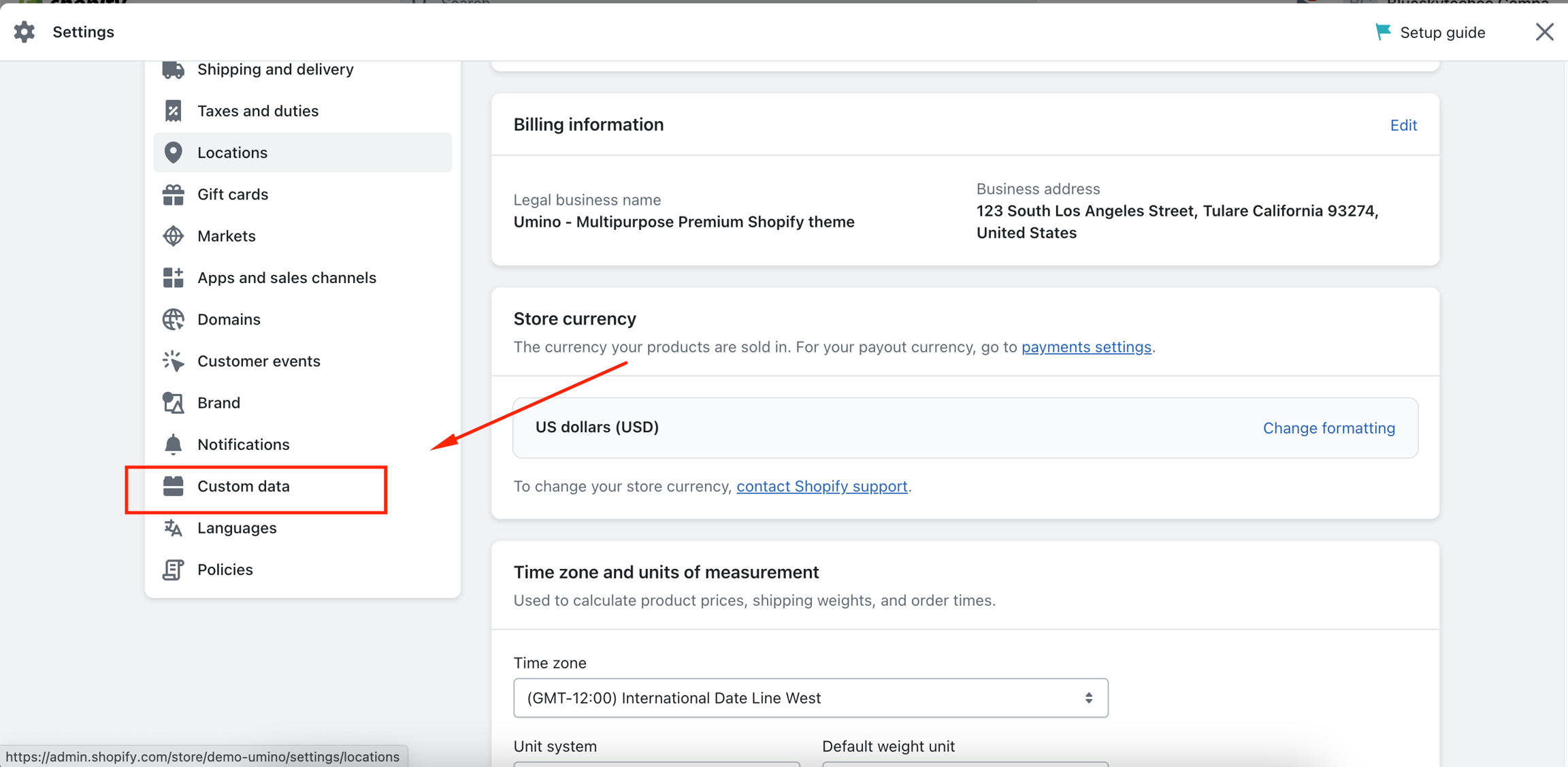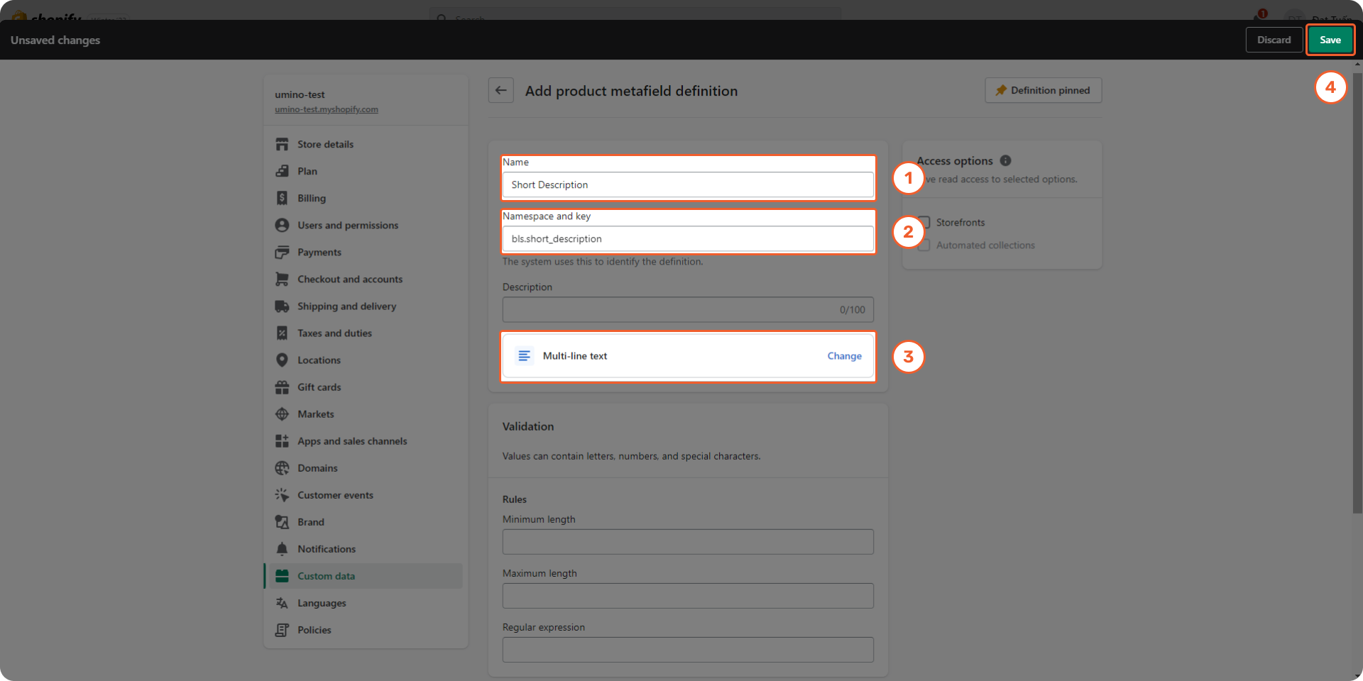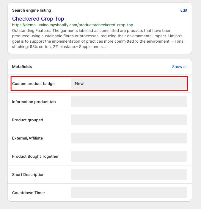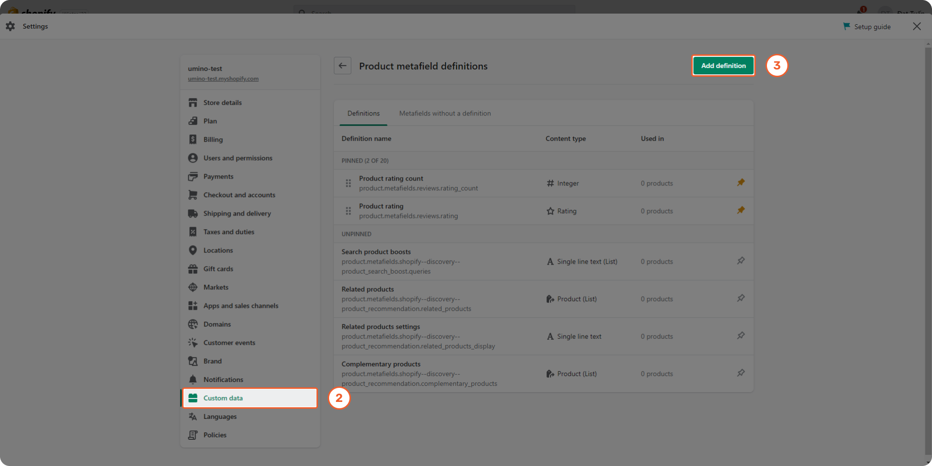 On Shopify homepage, go to Products and select the 'Information product tab' metafields to set the content you want to display for each product