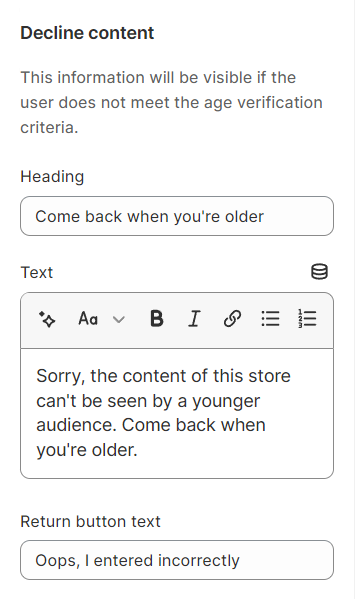 Decline content: When customers do not meet the specified conditions, a "Decline" content will be displayed to indicate that they are unable to access the content.