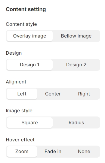 After choosing Content style as Overlay image, this Position options will be able to setup.