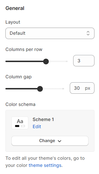 **Columns:** You can specify the number of columns per row and adjust the spacing between them.