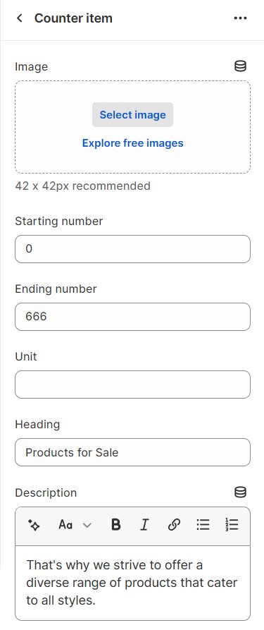 Here, you can configure the Counter section to display and highlight each of your achievements effectively.