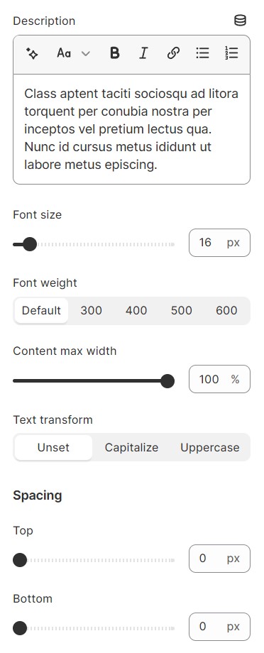 You can choose what to display and adjust its font size, font weight, and text transform.