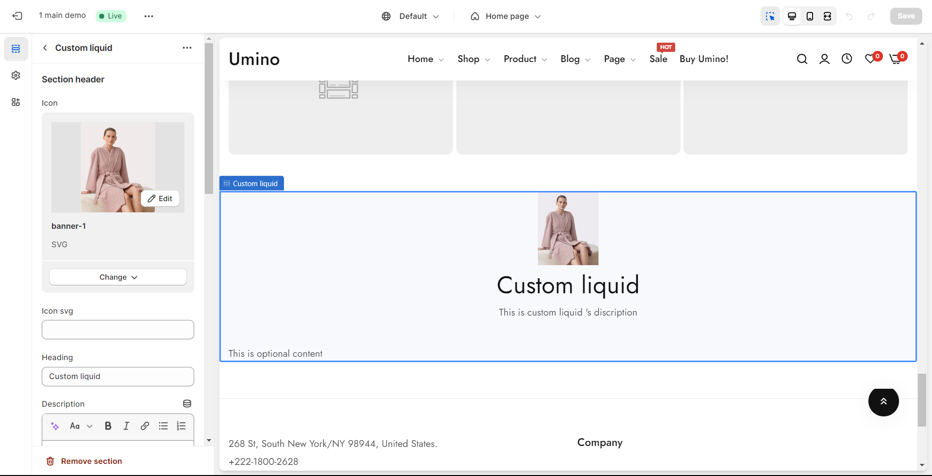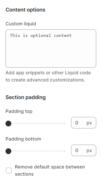 **Custom liquid** let you custom your own section with: