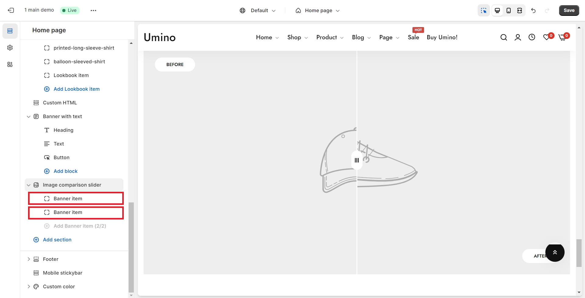 Image comparison slider shows 2 images next to each other which let customers see the differences between them.