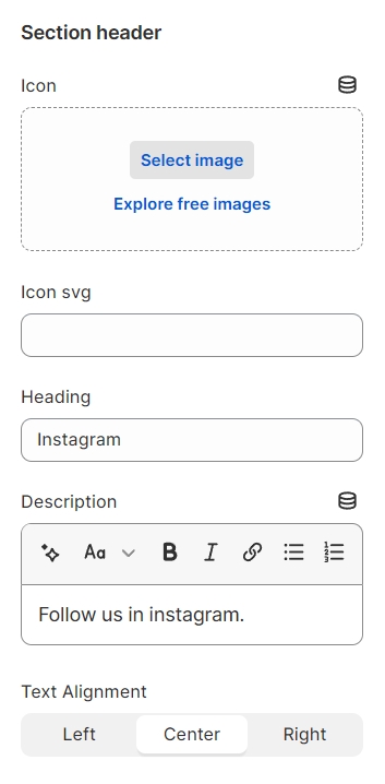 Use the provided fields to add a heading/subheading/description for the section. Leave any of the fields blank if you do not want to display them.