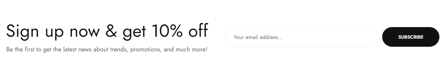 You can decide on the placeholder text and button label for the newsletter section. Additionally, choose the layout for the newsletter section with the specified **Form layout**.
