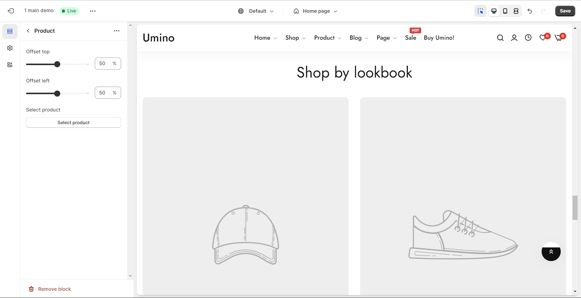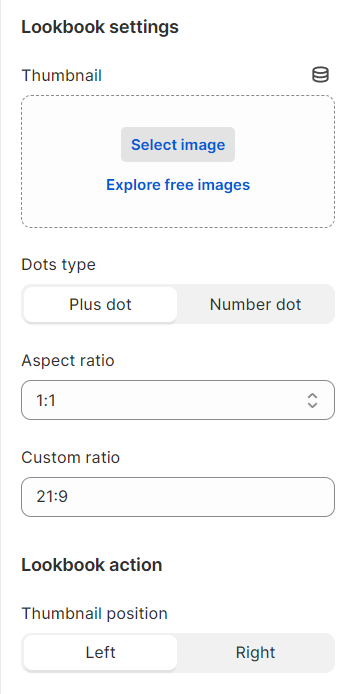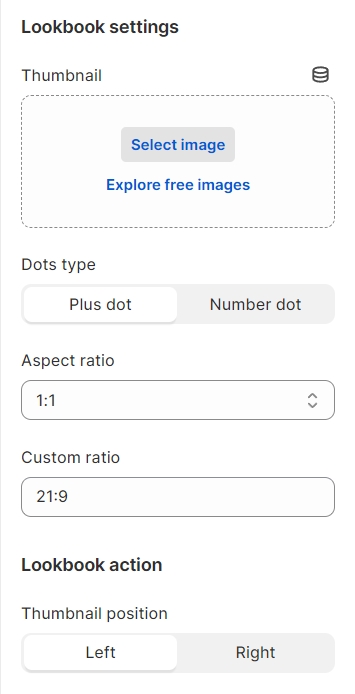 Thumbnail position: set the position of the thumbnail image relative to lookbook products