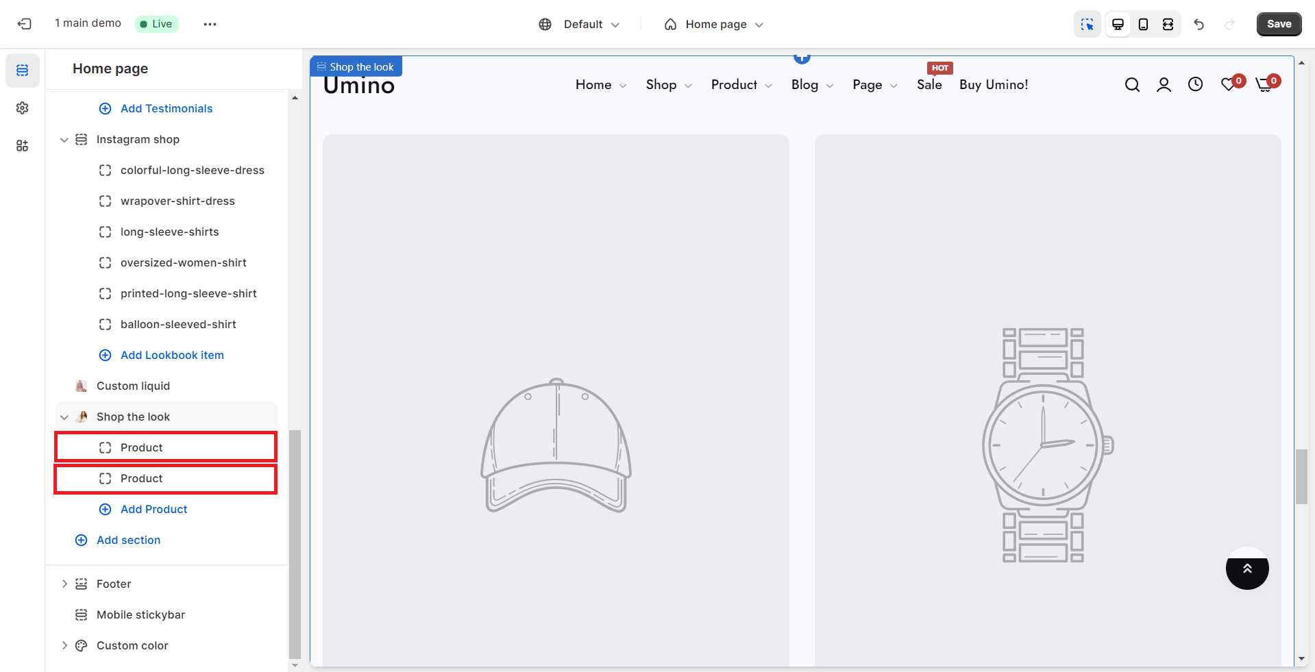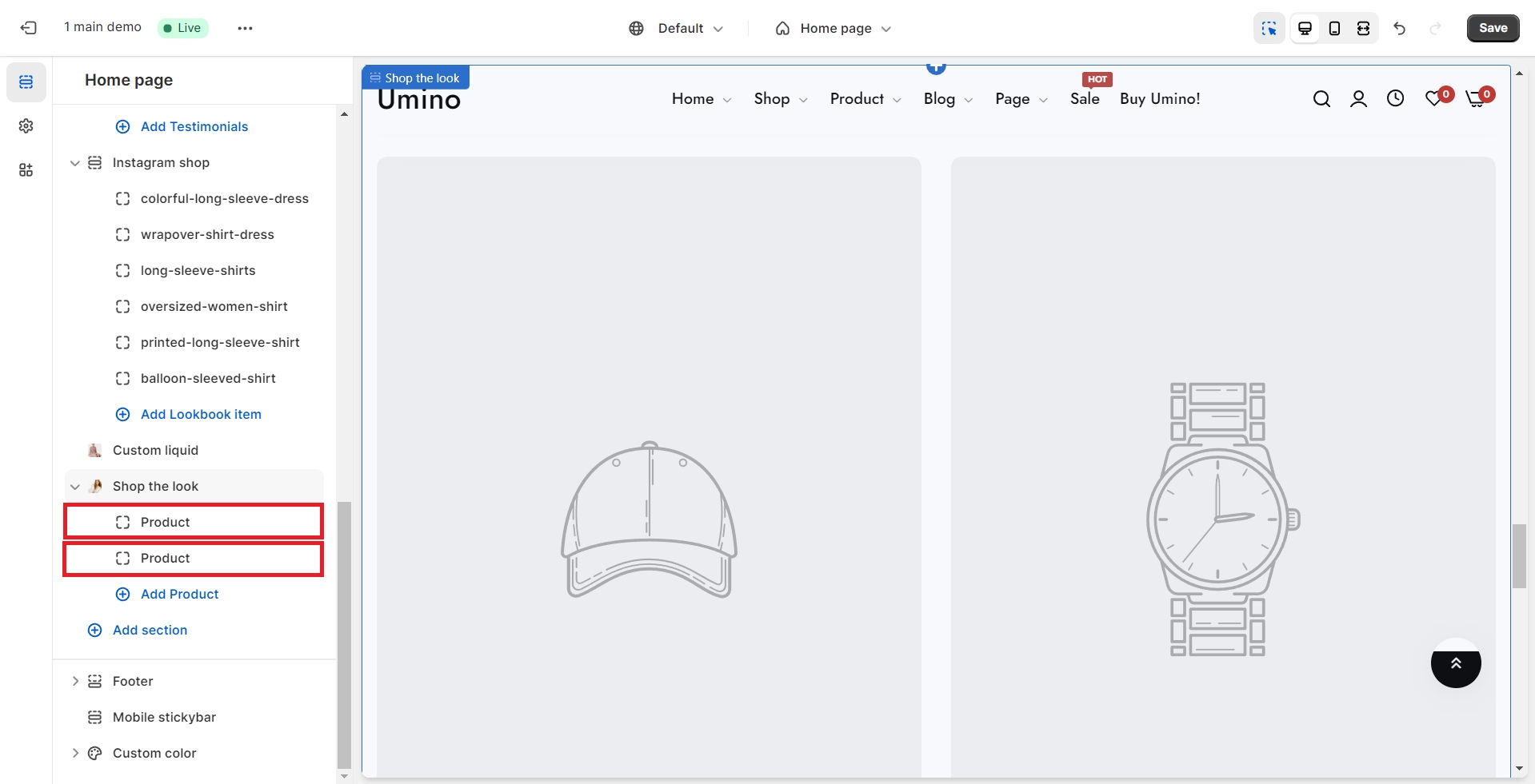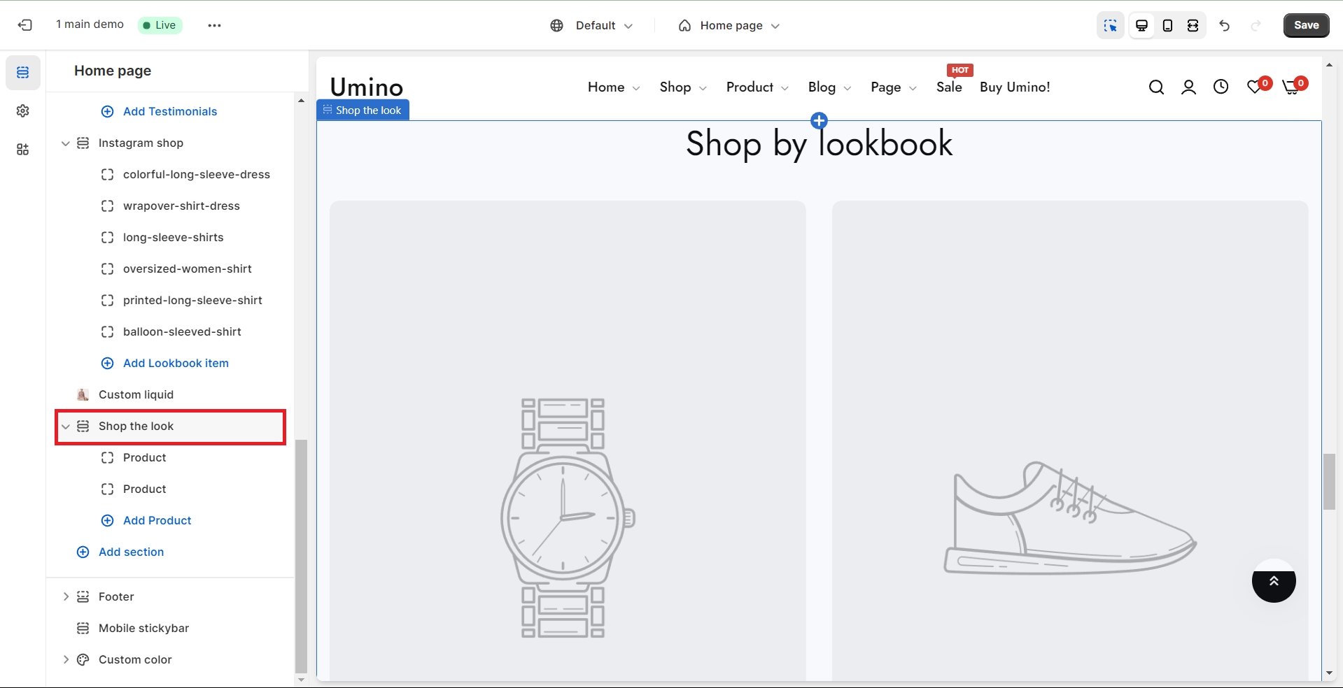 Shop the Look is where a set of products mixed and matched together. This section allows merchants to showcase complete outfits or curated product combinations, encouraging customers to easily purchase entire looks with just a few clicks.