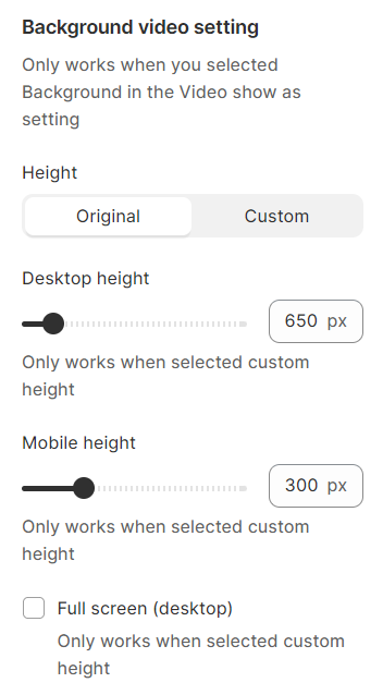 The display option for the video, whether as a Popup or in the Background, can be selected here.