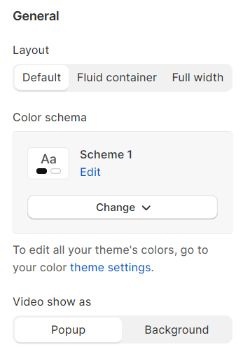 Layout: You can choose between Container, Wrapped container, Full width for the banner layout.