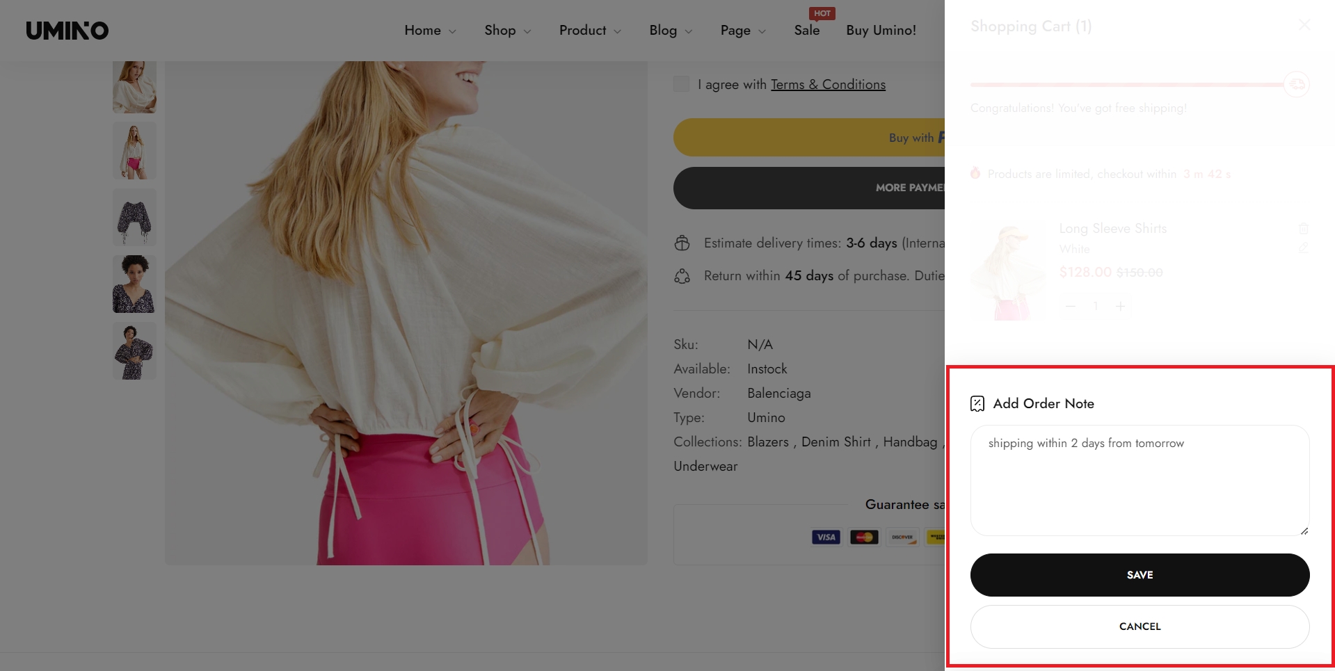 Cart note: Activating the Cart note feature enables customers to add notes to their shopping cart, enhancing communication and providing additional information during checkout.