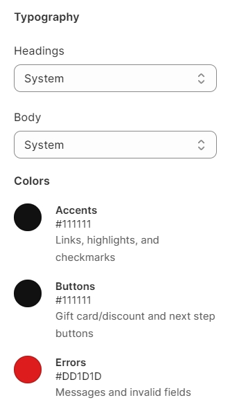 Use this part to change fonts and colors that match the store' aesthetic look.
