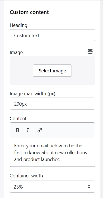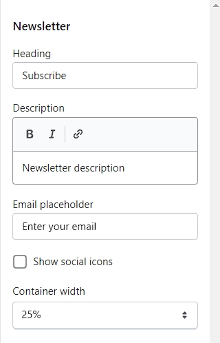Use the newsletter signup form to collect your customers' email addresses for email marketing campaign purposes. Change the title, description, email placeholder, and form style if you wish to.