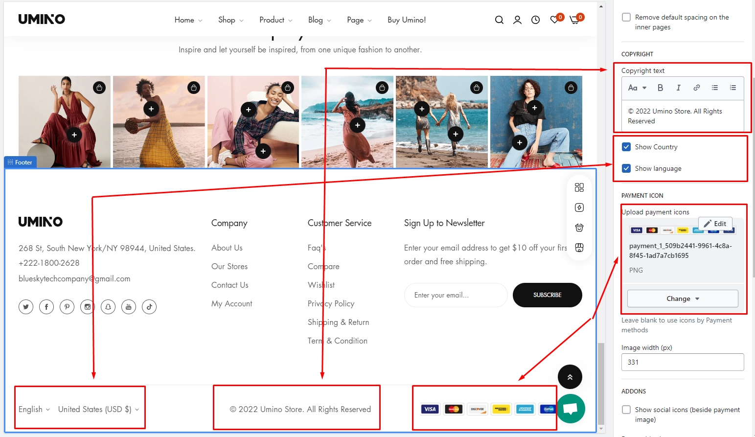 Add suitable blocks to your store footer as per your requirements. You can add up to 5 blocks.