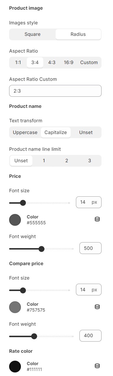 You can control what to show on the product card.