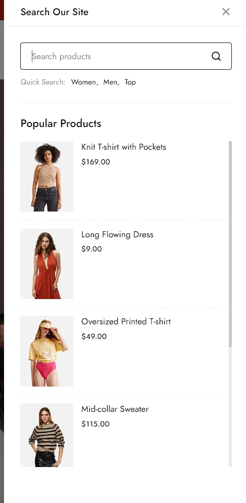 Search all: only when "Predictive search suggest" is selected in the "Predictive search type" setting, the search and suggest feature will include products, articles, and posts, offering comprehensive and relevant results.